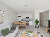 Tämä 46 m² kaksio tarjoaa viihtyisän ja käytännöllisen kodin, jossa keittiö ja olohuone muodostavat avaran yhteisen tilan. Kompaktissa makuuhuoneessa on kiinteät kaapit, jotka takaavat riittävän säilytystilan. Tilavassa kylpyhuoneessa on varaus pesutornille. Asunnon ehdoton etu on sen oma parveke, joka tarjoaa lisätilan oleskeluun ja rentoutumiseen. Huoneiston selkeä pohjaratkaisu tekee asumisesta helppoa ja viihtyisää. Sisäkuvat ovat kohteen toisesta vastaavanlaisesta asunnosta.