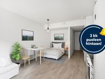 Tämä taloyhtiö on mukana Green homes -toiminnassa, jossa asukkaille tarjotaan tietoa vastuullisesta asumisesta sekä kiinteistön energiankulutuksesta ja päästöistä. Tiedot raportoidaan vuosittain porrashuoneiden ilmoitustauluilla. Voit lukea lisää Green homes -toiminnasta Mutkatonkoti.fi-sivuston Vastuullisuus-osiosta. KAMPANJA: Tähän asuntoon saat kolmen ensimmäisen kuukauden vuokrasta -50 % alennusta. Edun saa uusiin vuokrasopimuksiin. Etu edellyttää 12 kuukauden sitoutumista asumiseen. Sopimus pitää alkaa viimeistään 1.5.2026.