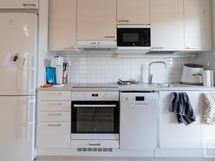 - Keittiön varusteet: Astianpesukone, liesi, liesituuletin, jääkaappipakastin ja erillisuuni