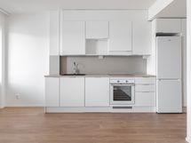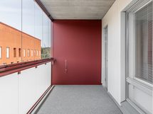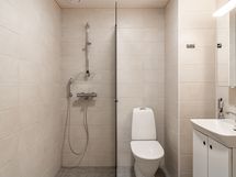 4 kerroksen kolmio lasitetulla parvekkeella. Lattiat laminaattia, seinät maalattu valkoiseksi. Keittiössä astianpesukone, induktioliesi sekä jääkaappipakastin. Kylpyhuone on kokonaan laatoitettu ja lattialla on mukavuuslämpö. Myös peilikaappi, sekä tila- ja liitäntävaraus pyykinpesukoneelle löytyy. Ikkunoissa sälekaihtimet.