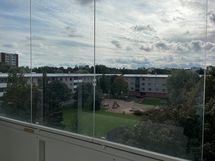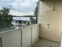 Vuokrattavana 4. kerroksen tilava neliö lasitetulla parvekkeella.