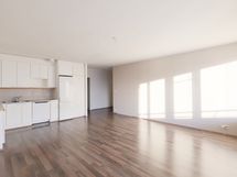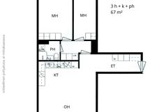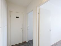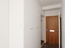 Asunnon lattiat ovat puujäljitelmä laminaattia ja seinäpinnat pääosin vaaleilla sävyillä maalatut. Säilytystilaa löytyy makuuhuoneiden lisäksi eteisen valkoisesta kaapistosta, jossa myös avonaulakko, sekä makuuhuoneiden vierellä olevan käytävän kaapistoista.