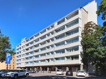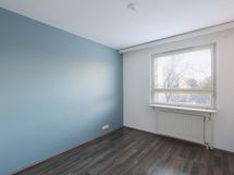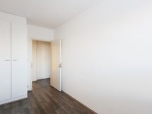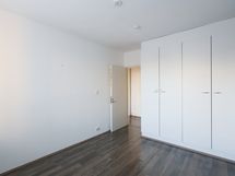 Makuuhuoneiden ikkunat ovat rauhallisen sisäpihan suuntaan. Molemmissa makuuhuoneissa on säilytystilaa valkoisissa kaapistoissa.