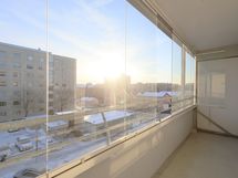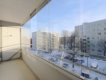 Olohuoneesta käynti todella reilun kokoiselle, lasitetulle parvekkeelle josta avarat näkymät Sirkkalankadun suuntaan.