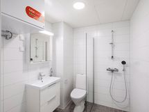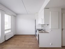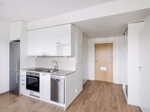 Asunnossa on vaalea laminaattilattia ja tyylikäs keittiö, jossa on integroidut kodinkoneet, kvartsitasot ja astianpesukone. Kylpyhuoneessa on mukavuuslattialämmitys, tilavaraus pyykinpesukoneelle sekä hyvin säilytystilaa peilikaapin ja allaskaapin ansiosta.
