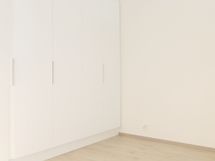 Lattiat ovat vaaleaa beigenharmaata lankkulaminaattia ja seinät ovat valkoiseksi maalattuja.