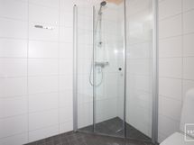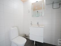 - Pesutilojen varusteet: WC-istuin, suihku, pesukoneliitäntä, allaskaappi, peilikaappi, bidee-suihku, lattialämmitys ja suihkuseinä. Pesutilojen kuvaus: Puustellin kalusteet. Seinälaatat Pukkila White 25x40 valkoinen matta ja lattia Pukkila Geo Antracite 10x10 lattialaattaa. Katossa haapapaneeli. Allaskaappi 600mm leveä kahdella laatikolla ja Josefina Slim 605C-altaalla, 600 leveä peilikaappi kahdella ovella, integroidut valaisimet ja pistorasia kaappin sisällä, Oras Optima suihkusetti, Gustavsberg Nautic 1500 wc-istuin, Oras Safira pesuallashana ja pideesuihku, Ocean 3+3 suihkukulma kirkkaalla lasilla ja matta-alumiini seinäprofiililla.