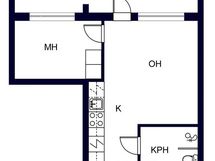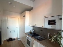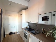- Keittiön varusteet: Jääkaappipakastin, liesituuletin, liesi, erillisuuni, uuni ja astianpesukone. Liesi: Induktioliesi. Työtason materiaali: Laminaatti.