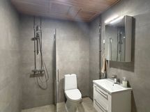 - Pesutilojen varusteet: WC-istuin, suihku, lattialämmitys, bidee-suihku, peilikaappi, pesuallas, allaskaappi ja pesukoneliitäntä.