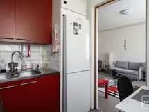 Keittiö on varustettu tarpeellisilla kodinkoneilla, kuten jääkaappipakastimella ja keraamisella liedellä. Kylpyhuoneesta löytyy suihku ja pesukoneliitäntä, mikä tekee arjesta sujuvaa. Taloyhtiössä on myös sauna, jossa voi rentoutua päivän päätteeksi.