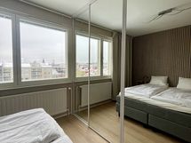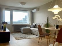 Tässä huoneistossa on hyvin varustettu keittiö, jossa on astianpesukone. Makuuhuoneessa on laadukas jenkkisänky. Kylpyhuoneessa on pyykinpesukone ja koko huoneistossa on ilmainen wifi. Olohuoneessa HD-tv ja vuodesohva. Asunnon kruunaa lasitettu parveke, joka tarjoaa lisätilaa rentoutumiseen ja ilta-auringon ihailuun. Huoneisto sijaitsee hissitalon 9. kerroksessa.