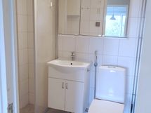 Suihku, Suihkuseinä, Pesukonevalmius, Peilikaappi, Allaskaappi, Laattalattia, Laattaseinä, Lattialämmitys