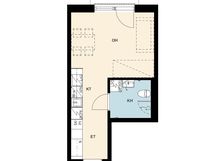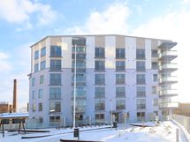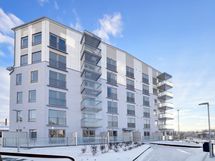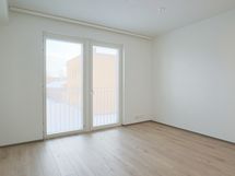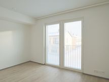 Valoisa yksiö ranskalaisella parvekkeella As Oy Turun Linnanmalmin Vasaran 2. kerroksessa. As Oy Turun Linnanmalmin Vasara on joulukuussa 2023 valmistunut 7-kerroksinen talo Puutarhakadun joenpuoleisessa päässä.