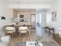 - Paljon kaappitilaa, Paljon työskentelytilaa, Laminaattitasot, Integroidut koneet, Astianpesukone, Induktioliesi, Jää-pakastinkaappi