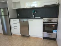 - Tilaa isolle ruokapöydälle, Paljon kaappitilaa, Laminaattitasot, Astianpesukone, Induktioliesi, Jenkkikaappi