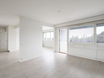 Saunallinen viidennessä kerroksessa sijaitseva läpitalon asunto, jonne tulvii valoa kahteen suuntaan olevista ikkunoista. Huoneiston lattiat ovat vaalean harmaata laminaattia ja seinät on maalattu valkoiseksi.