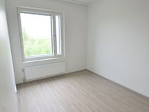 - Ikkunoissa sälekaihtimet. Verkkokäyttöinen palovaroitin. Pintamateriaalit: Lattiat massiivivinyyli (harmaa tammi). Seinät valkoinen maali.
