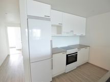 - Keittiön varusteet: Jääkaappipakastin, liesi ja astianpesukone. Liesi: Keraaminen liesi. Keraaminen liesi, liesikupu, jääkaappi-pakastin, astianpesukone. Vaaleat korkeakiiltokaapistot. Työtaso (vaaleanharmaa), komposiittiallas (musta), välitila vaaleaa lasia, välitilan valaistus led-spotit. Paikkavaraus mikroaaltouunille.