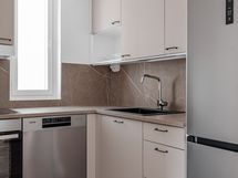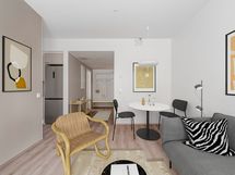 Tässä asunnossa on toimiva pohjaratkaisu, jonka ansiosta saat mahtumaan kotiisi kaiken tarvittavan. Pintamateriaaleissa näkyy Urbaani-teema, jonka kontrastit ja graafisen selkeät linjat tuovat modernia ilmettä kotiisi. Rouheiden materiaalivalintojen kaverina löytyy kodikkaan pehmeitä ruskean ja harmaan sävyjä.