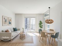 Beautiful and bright 1–3 room apartments in the developing Herttuankulma area. The apartments are modern, and the kitchen appliances are stylishly integrated. The equipment includes a built-in oven, induction cooktop, dishwasher, and fridge-freezer.
