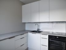 Keittiön varusteet: Uuni, liesi, liesituuletin ja jääkaappi