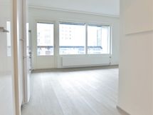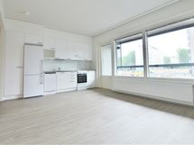 - Ikkunoissa sälekaihtimet. Verkkokäyttöinen palovaroitin. Pintamateriaalit: Lattiat massiivivinyyli (harmaa tammi). Seinät valkoinen maali.