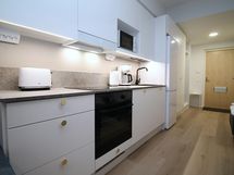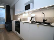 Welcome to our cozy furnished studio apartment in Pitkämäki, Turku, offering a blend of comfort and convenience for your stay. Situated on the fifth floor of an 8-story building, this modern space is ideal for up to 2 guests seeking a long-term retreat. The apartment features a well-equipped kitchen with cooking supplies, a fridge, oven, and dishwasher, perfect for preparing home-cooked meals.