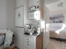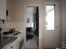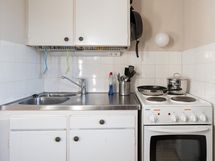 - Keittiön varusteet: Jääkaappipakastin (Pakastinlokero), liesi ja astianpesukoneliitäntä