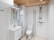 Huoneiston pintamateriaalit: lattia tammilaminaattia, seinäpinnat tasoitettu ja maalattu ja kattopinnat ruiskutasoitettu ja maalattu. Keittiön varustelu: laadukkaat rosteripintaiset Electroluxin kodinkoneet: jääkaappipakastin, keittotaso, liesituuletin, kalusteisiin asennettu erillisuuni ja astianpesukone. Kaapinovet valkoisia kiiltäviä kalvo-ovia ja mikroaaltouunille on tilavaraus. Työtaso suorareunaista ns. cappuccinon väristä kivitasoa. Välitilassa kiiltävä valkoinen välitilalaatta. Kylpyhuoneen pintamateriaalit: lattia keraamista laattaa, seinäpinnat keraamista mattavalkoista seinälaatta ja katossa puupaneeli. Kylpyhuoneen varustelu: ovellinen pesuallaskaappi, peilikaappi led-valoilla, suihkuseinä kääntyvällä ovella, suihku ja pyykinpesukoneliitäntä.