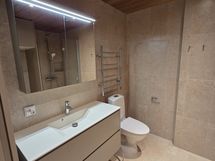 Suihku, Suihkuseinä, Pesukonevalmius, Rättipatteri, Peilikaappi, Allaskaappi, Laattalattia, Halogeenivalot, Laattaseinä