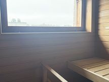Oma sauna ja iso kylpyhuone, joka on kokonaan laatoitettu vaalein valkoisen ja beigen sävyin, lisäävät arjen mukavuutta. Kylpyhuoneesta löytyy myös tila pyykinpesukoneelle.