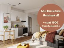 Kampanjaehdot: Kampanja voimassa Juli Bertelinkulman Kajaste asuntoihin, joihin solmitaan toistaiseksi voimassa oleva vuokrasopimus 12 kuukauden minimiasumisajalla. Jotta voit hyödyntää kampanjamme, asunnon vuokraus on tehtävä verkkosivuillamme 1.4.-30.4.2026 välisenä aikana. Vuokrauksen yhteydessä maksettu ennakkovuokra vähennetään kolmannelta täyden kuun vuokralaskulta ja kampanjaetu vähennetään neljänneltä täyden kuun vuokralaskulta. Mikäli sopimus on kestänyt alle 4 kuukautta, kampanjaetua ei hyödynnetä eikä sitä hyvitetä vuokralaskulta. Mikäli sopimus irtisanotaan ennen minimiasumisajan päättymistä, aiemmin hyvitetty kampanjaetu laskutetaan viimeisessä vuokralaskussa. Kampanjaetua ei voi hyödyntää aiemmin tehtyihin vuokrasopimuksiin eikä etua voi yhdistää muihin kampanjoihin. Kampanjaetua ei voi hyödyntää sopimusmuutoksissa, asunnonvaihdoissa Juli-kodista toiseen minimiasumisaikana tai jos vuokranmaksu ei ole ajan tasalla. Kampanjaetu ei koske vesimaksua.