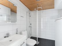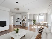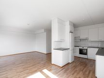 Kodissa on selkeä ja avara kokonaisuus, jossa olohuoneesta on suora käynti omalle terassille. Vaaleasävyinen keittiö on ajattoman tyylikäs ja varustettu arkea helpottavilla kodinkoneilla: astianpesukone, keraaminen liesi ja jääkaappipakastin. Olohuoneeseen mahtuu hyvin sekä ruokailuryhmä että sohvaryhmä. Vaaleat pinnat tekevät kodista valoisan ja helposti sisustettavan. Makuuhuoneessa on hyvin säilytystilaa, ja laatoitetussa kylpyhuoneessa on paikka pesutornille, sähköinen lattialämmitys sekä käytännöllinen pyykkikaappi. Terassi tuo mukavasti lisätilaa arkeen ja tarjoaa mainion paikan oleskeluun.