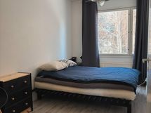 Asunnossa makuuhuone, keittiö, kylpyhuone, vaatehuone ja tilava olohuone josta käynti parvekkeelle.