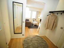 Studio apartment in Vöyri, offering a comfortable and affordable stay for up to 2 guests. This furnished apartment is equipped with all the essentials for a pleasant long-term stay. The kitchen is fully equipped with a dishwasher, oven, microwave, and cooking supplies, perfect for preparing meals during your visit. Relax in the living area with a sofa while watching TV or enjoy the fresh air on the terrace.