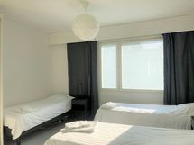 This apartment in Vaasa is furnished for four guests. The kitchen is equipped with all the necessary household appliances, such as a refrigerator, oven, stove, microwave, coffee maker, breadcrumbs, kettle and dishwasher. The light living room has a TV, sofa. The bathroom has a washing machine. The apartment also has a balcony with access from the living room side. All the services of the city center are nearby, eg. The market square is only about a 5-minute drive away. Shops can be found in the nearby area. There are several cozy parks in the area,