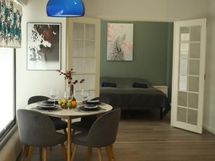 Modern apartment in city center fully renovated in 2022 and furnished. The apartment includes a smart tv, dishwasher, washing machine, 2 toilets, and internet. You can have 2 singles bed or a double in the bedroom. The apartment is 55 m2 and has an independent entrance