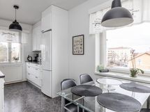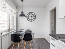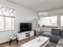 Asunto sijaitsee kolmannessa kerroksessa ja tarjoaa toimivan pohjaratkaisun kahdella huoneella, keittiöllä, kylpyhuoneella ja lasitetulla parvekkeella. Keittiö on varustettu moderneilla kodinkoneilla: jääkaappi-pakastin, keraaminen liesi, liesituuletin ja astianpesukone helpottavat arkea. Kylpyhuoneeseen mahtuu pesukone.