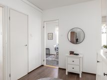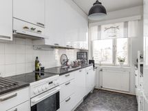 Lägenheten är belägen i tredje våningen och erbjuder en fungerande planlösning med två rum, kök, badrum och en inglasad balkong. Köket är utrustat med moderna maskiner: kylskåp-frys, keramisk spis, spisfläkt och diskmaskin som underlättar vardagsbestyren. I badrummet ryms en tvättmaskin.
