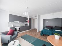 Kodikas yksiö vuonna 2019 valmistuneessa talossa Tikkurilassa