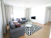 A bright and beautiful three-bedroom apartment in the new residential area Leinelä in Vantaa. The apartment is in good condition and is furnished for four persons. The bedrooms have wardrobes, and there is a walk-in closet, too. The glazed balcony makes the apartment more spacious. The spacious kitchen is equipped with, for example, a dishwasher, kitchen utensils and amenities, such as a coffee maker. Besides, there is a washing machine in the bathroom. For additional comfort, there is a sauna and a separate toilet besides the bathroom. Linen, towels and WiFi are included in the price, and there is also a parking place in a parking hall. The apartment is located only 200 meters away from the train station of Leinelä. For example the Helsinki airport and Tikkurila can be reached quickly by train. The nearest grocery store and a gas station are a kilometer away, and there are more stores and services in Koivukylä, less than two kilometers away. Helsinki is 24 kilometers away.