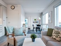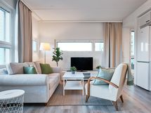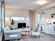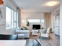 Discover this modern and efficient two-room apartment, completed in 2024 in Tikkurila, Vantaa. Excellently located, the apartment is just a 20-minute train ride from Helsinki's city center and 10 minutes from the airport. Tikkurila's comprehensive services and the train station are within a short walking distance. The bright corner apartment benefits from large windows that fill the space with light. The bedroom features high-quality Unikulma hotel-standard beds, ensuring a restful sleep. The apartment also includes a glazed balcony, enhancing living comfort. The well-equipped kitchen comes with a practical dining set. In the living room, a comfortable sofa and TV offer a relaxing space amidst daily hustle. The brand new bathroom includes a washing machine, adding to the convenience of living. Additionally, there is an option to inquire about a parking space.