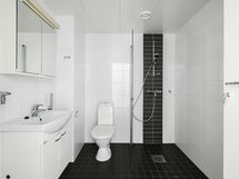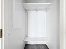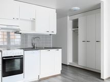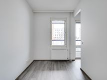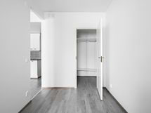 Isot ikkunat tuovat kivasti valoa asuntoon ja näkymät avautuvat sisäpihalle. Makuuhuoneesta avautuvaan vaatehuoneeseen mahtuu niin arki- kuin kausivaatteet. Kylpyhuone on kompaktin kokoinen ja sieltä löytyy pesukoneliitäntä.