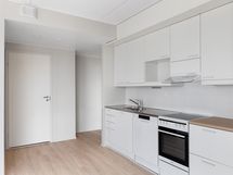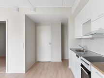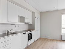Lattiat ovat helppohoitoista vinyylilankkua. Keittiö on varustettu keraamisella liedellä ja astianpesukoneella. Keittiön vakiovarusteena on jääpakastinkaappi. Kylpyhuoneessa on tyylikäs keraaminen laatoitus ja tilaa pyykinpesukoneelle sekä kuivausrummulle.