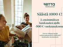 Säästä 1000€ - kahdesta ensimmäisestä kuukaudesta -500€ alennus, edellyttää 7kk sitoutumista asumiseen.