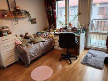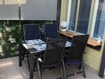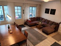 Fully furnished 3-story 5-room apartment with glazed terrace. The quiet residential area has good services (e.g. The International School), outdoor areas and transport connections. The apartment includes household appliances, bed linen, dishes, etc. necessary for living. District heating and air heat pump. There is a heated parking space (with charging capability) in front of the apartment. Water, electricity, internet connection, parking spot and insurance are included in the rent. Rental period: 12.8.2025-11.1.2026 or as agreed.