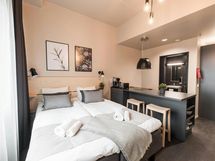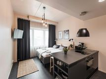 This comfortable twin room is a great choice as it adds an extra touch of comfort to your stay. Free Wifi means you always stay connected. Included in the price are linens, towels and final cleaning. Your private bathroom is outfitted with a shower. Your room also includes a flat-screen TV, electric kettle, hair dryer, coffee maker, toaster, clothes iron and ironing board. When preparing small meals in your room, you can make use of the kitchenware, refrigerator, microwave combination oven and electric stovetop. The bar stools and counter give you space to eat or get work done, and the arm chair provides a nice place to relax. If you want to enjoy a meal in the city, there are plenty of restaurants just a short walk away. Also, the Dixi Shopping Center is right next door. You can come and go as you please, using your private key code for access. Public transportation is readily accessible, as the Aparthotel is directly connected to the Tikkurila train station.