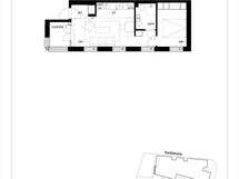The residents have their own storage room for their belongings, as well as common facilities: a sauna, a small laundry room, a drying room and storage for outdoor equipment. For waste collection, the company shares a deep waste collection system with the neighbouring housing company. Garage parking spaces are available for rent in the next garage for 85€/space/month.