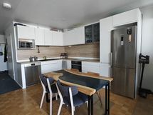 Valoisa keittiö (remontoitu -20), jonka varusteluun kuuluu vaaleat kaapistot, uuni, liesi, jääkaappipakastin. Avoin pohjaratkaisu yhdistää keittiö olohuoneeseen. Iso makuuhuone, jossa liukuovi kaapistot reilulla säilytystilalla. Tyylikäs ja käytännöllinen kylpyhuone (remontoitu -20.) Eteisessä liukuovikaapistot. Iso koko asunnon levyinen lasitettu parveke.