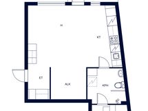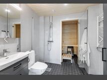 - Pesutilojen varusteet: WC-istuin, suihkuseinä, peilikaappi, suihku, pesukoneliitäntä ja lattialämmitys.